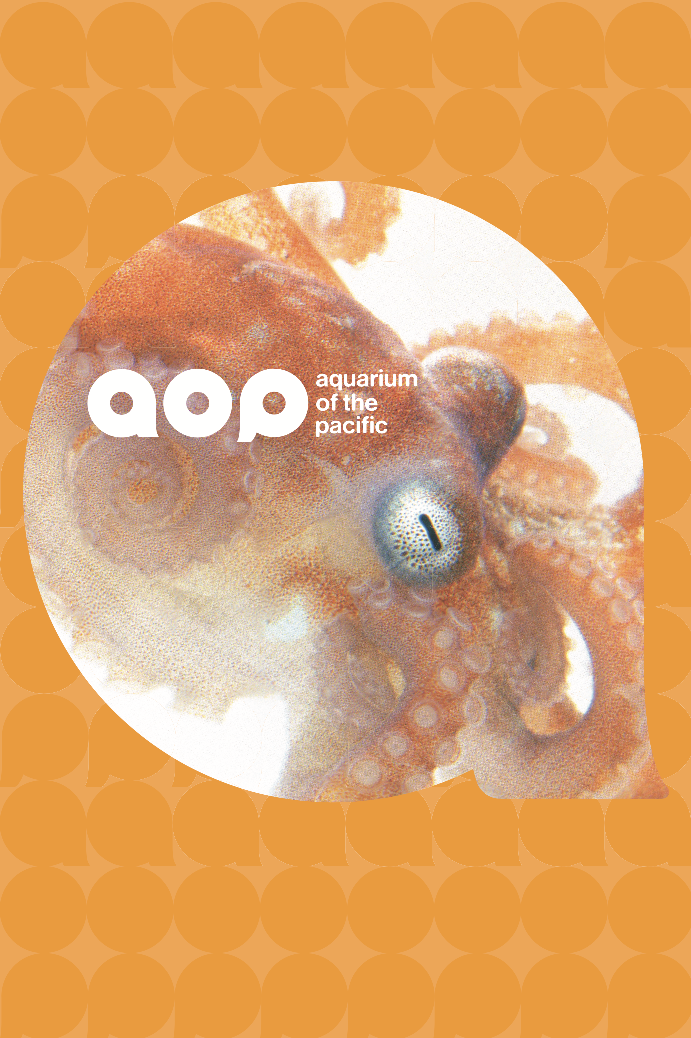 The shape of “aop” also has meaning, so it would not be just shortening for no reason. The circular shaped of “aop” reflects a lot of circular forms in aquarium, such as circular windows for aquarium and submarine. Also it reflects the look of single cell to planet, which relates to how aquarium has smallest organism to giant sea animal. Understanding the fact that it would take quite a long time to instantly refer “aop” as Aquarium of the Pacific, I also put word mark logo next that was also modified to reflect the look of “aop”.